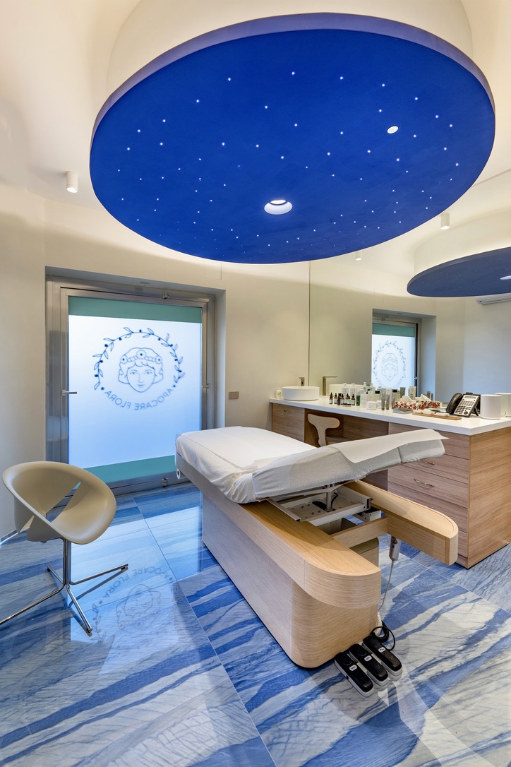 Una delle sale, inoltre, è dotata di un bagno spa, con hammam, sauna, doccia emozionale, cromoterapia, percorso kneipp.